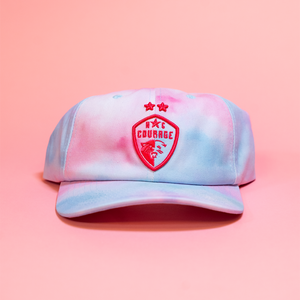 Top off your look with the NC Courage Pastel Tie-Dye Hat! Swirled in pink and blue shades, this playful cap keeps the sun out of your eyes while showing off NC Courage pride. Fun, colorful, and perfect for the sweetest game day vibes!