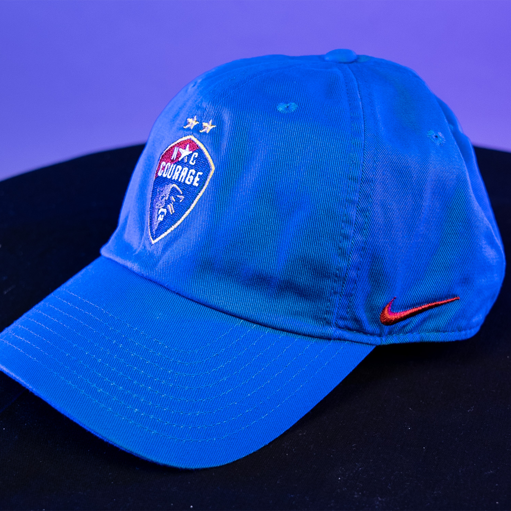 This classic hat features a vibrant royal blue color and the NC Courage logo embroidered on the front. Made from durable, breathable fabric, it offers a comfortable fit with an adjustable strap for a customizable size.