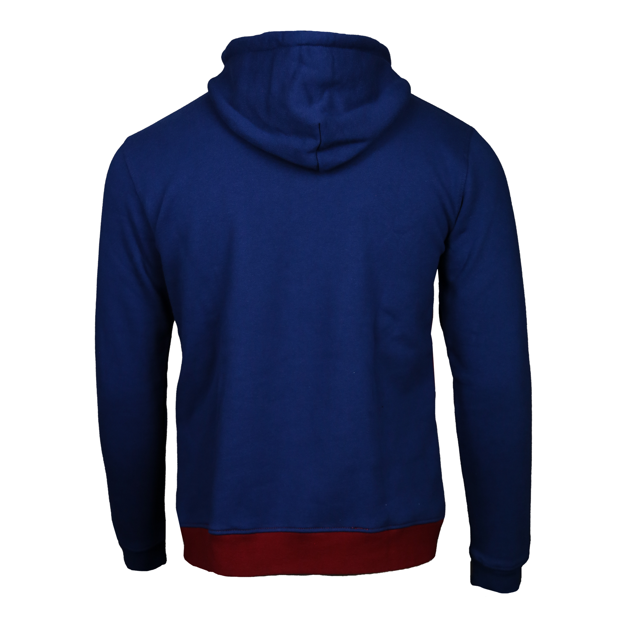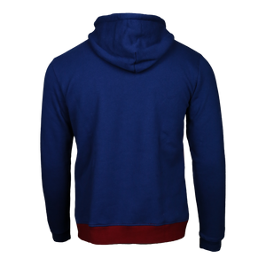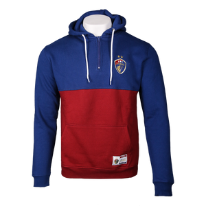 Unique, half-zip fleece hoodie features a classic color-block design and full embroidered badge