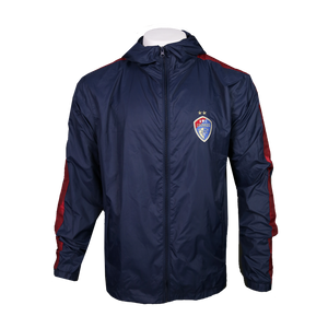 This navy full-zip wind jacket is perfect for those chilly night games. Featuring red striped contour down the sleeves, fully embroidered Courage logo, and zippered pockets.