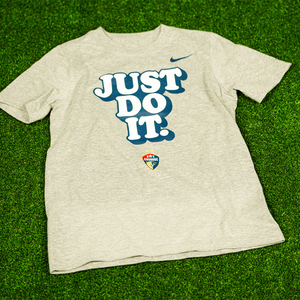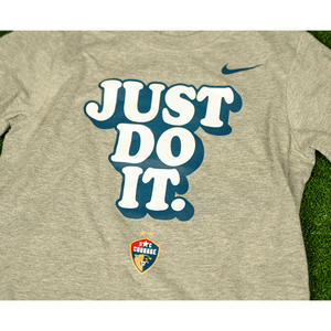 This sleek charcoal t-shirt features the iconic "Just Do It" slogan alongside the NC Courage logo, blending motivation with team pride.