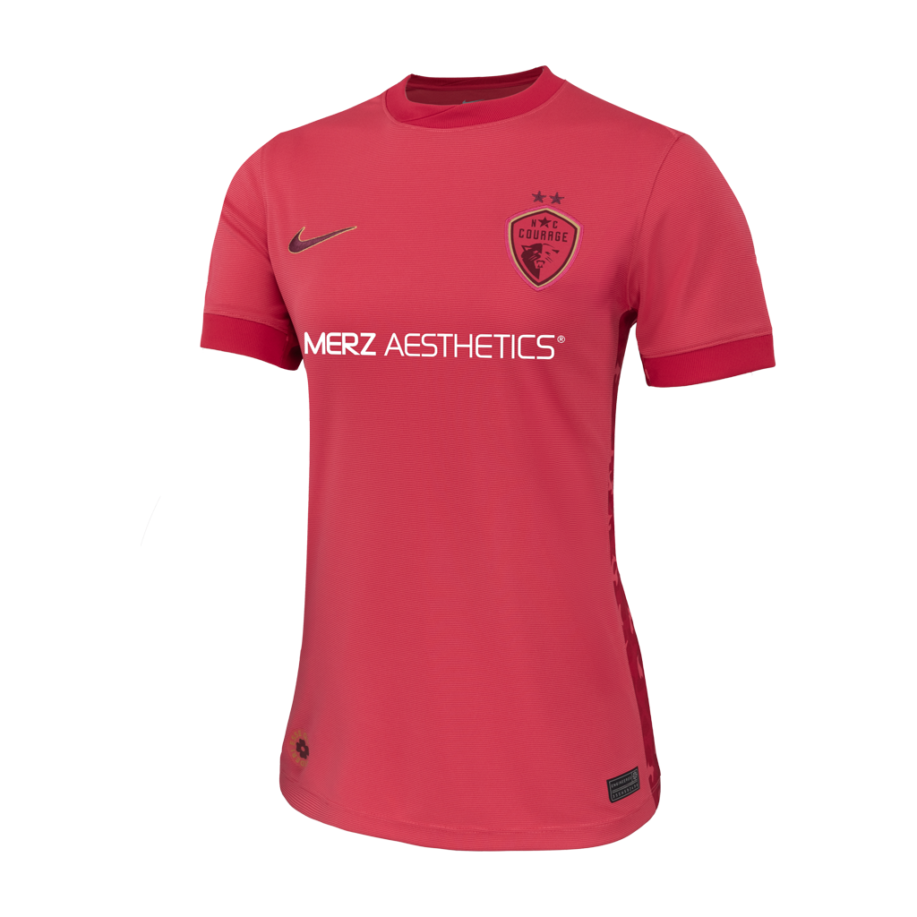 Featuring a striking design with tonal accents and fresh new Very Berry colorway, this jersey dubbed "the Believe kit" celebrates strength and confidence. The club crest and Nike swoosh are subtly detailed and highlighted in gold, while the MERZ sponsor logo provides a clean contrast.