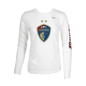 Women's cut cotton long sleeve tee featuring a full color crest across the chest and Courage down one sleeve
